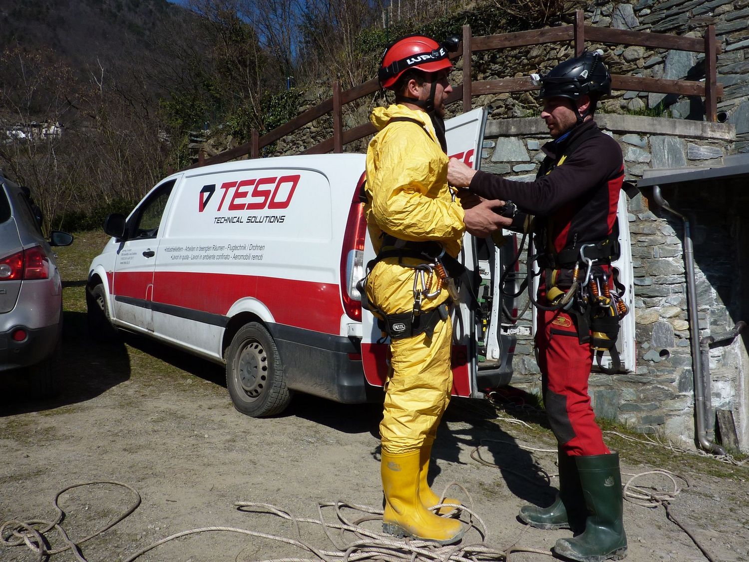 Wo wir mit Klettertechniken nicht hinkommen, haben wir verschiedene technische Hilfsmittel, um komplexe Arbeiten an schwer erreichbaren Orten durchzuführen, zum Beispiel unter Wasser oder in beengten Räumen. Seit Jahren arbeiten wir auch für Großwasserkraftbetreiber als Dienstleister an schwer zugänglichen Orten sowie im Bereich Sediment-Management.